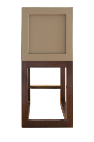 Warm brass and cool leatherette meet rich solid walnut in this tailored, streamlined chair. Narrow width supports, yet fits comfortably even in close quarters. Polished brass inlay is a subtle play on the collection's LT signature. Upper back recess enables a sure grip. Footrest clad in polished brass.